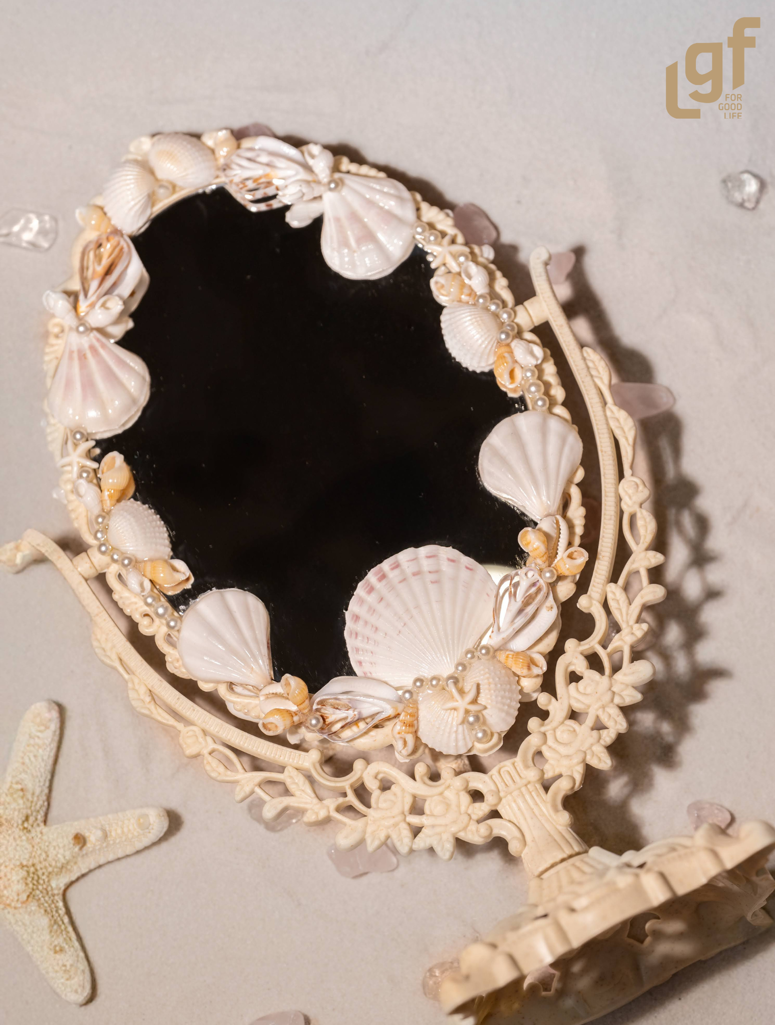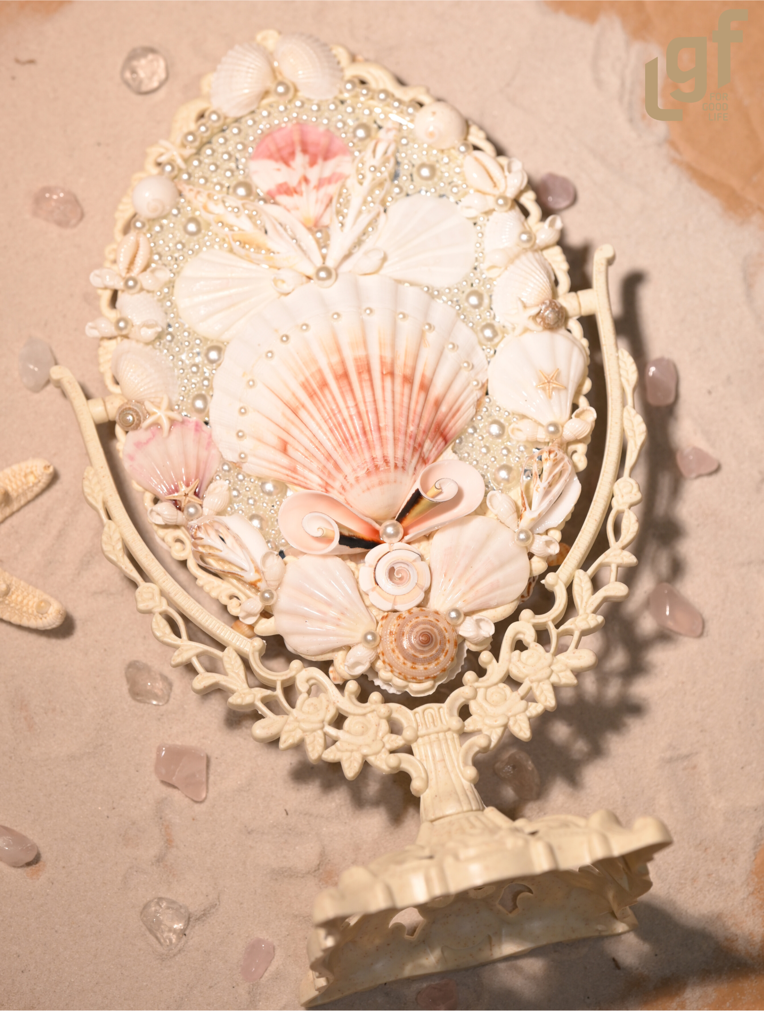 The “Seashell Muse” Table Mirror is a gentle whisper of elegance — blending vintage flair with the beauty of nature, handcrafted with love and care.